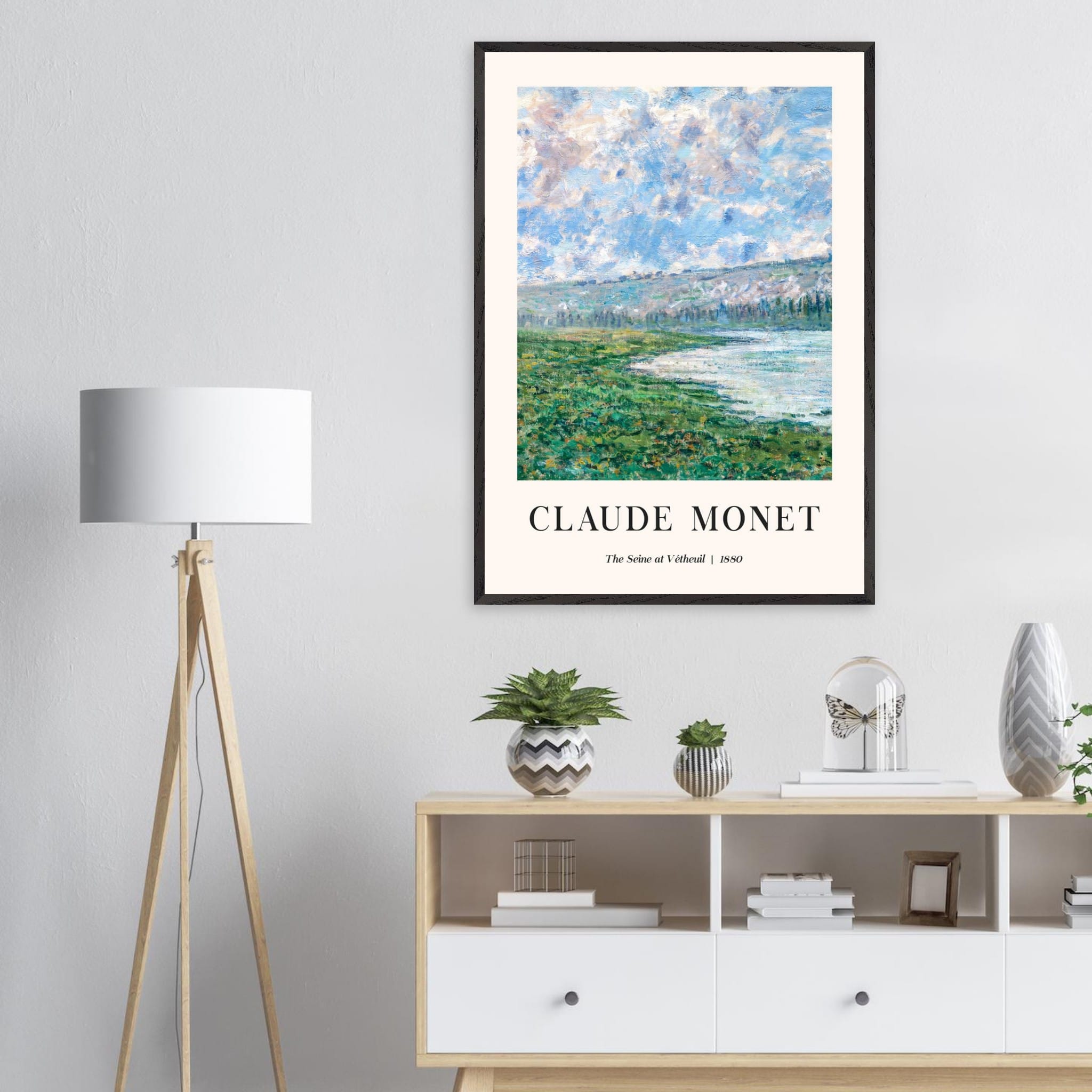 “Claude Monet’s – The Seine at Vétheuil” vangt de kalmte van reflecterende wateren en het charmante Franse platteland in impressionistische stijl.