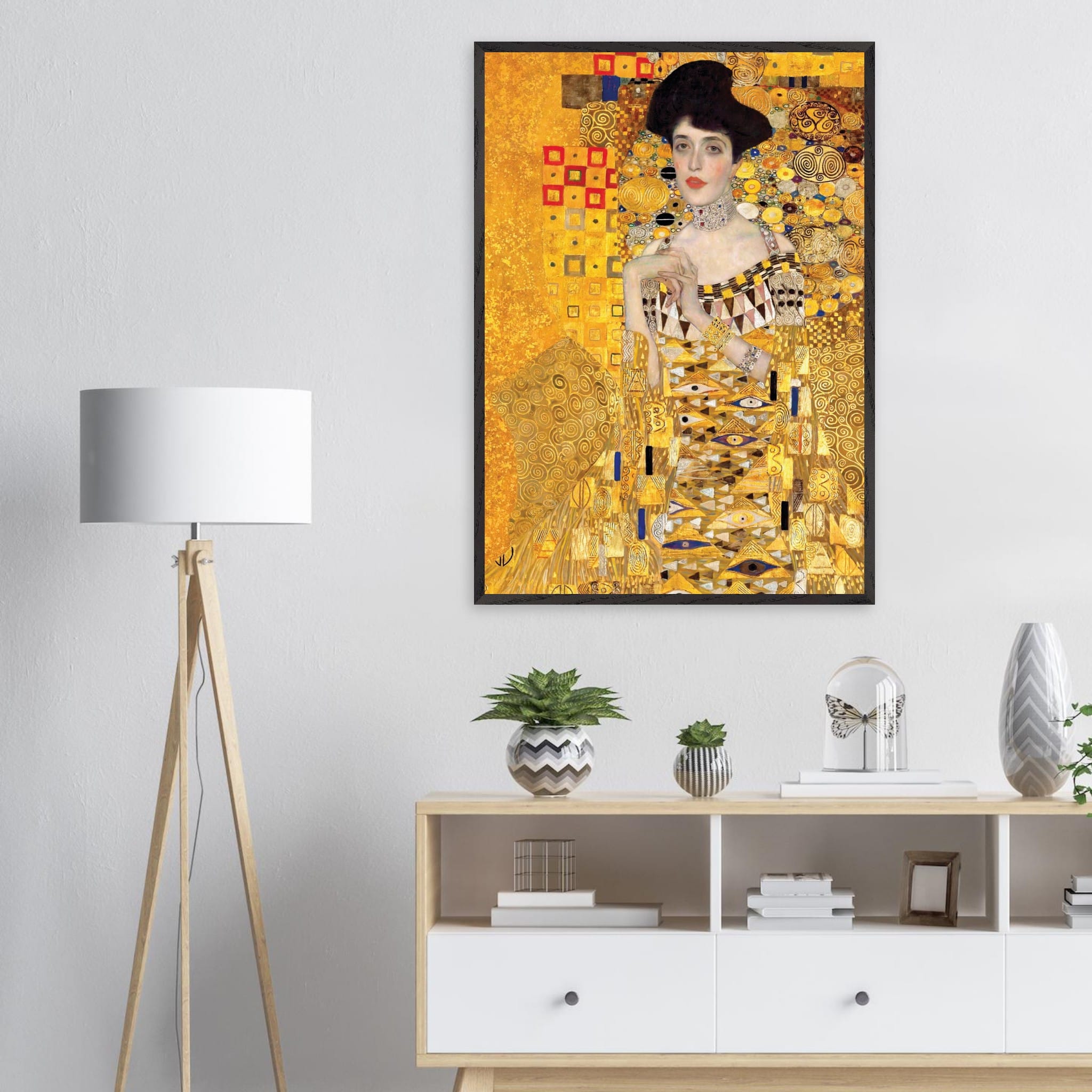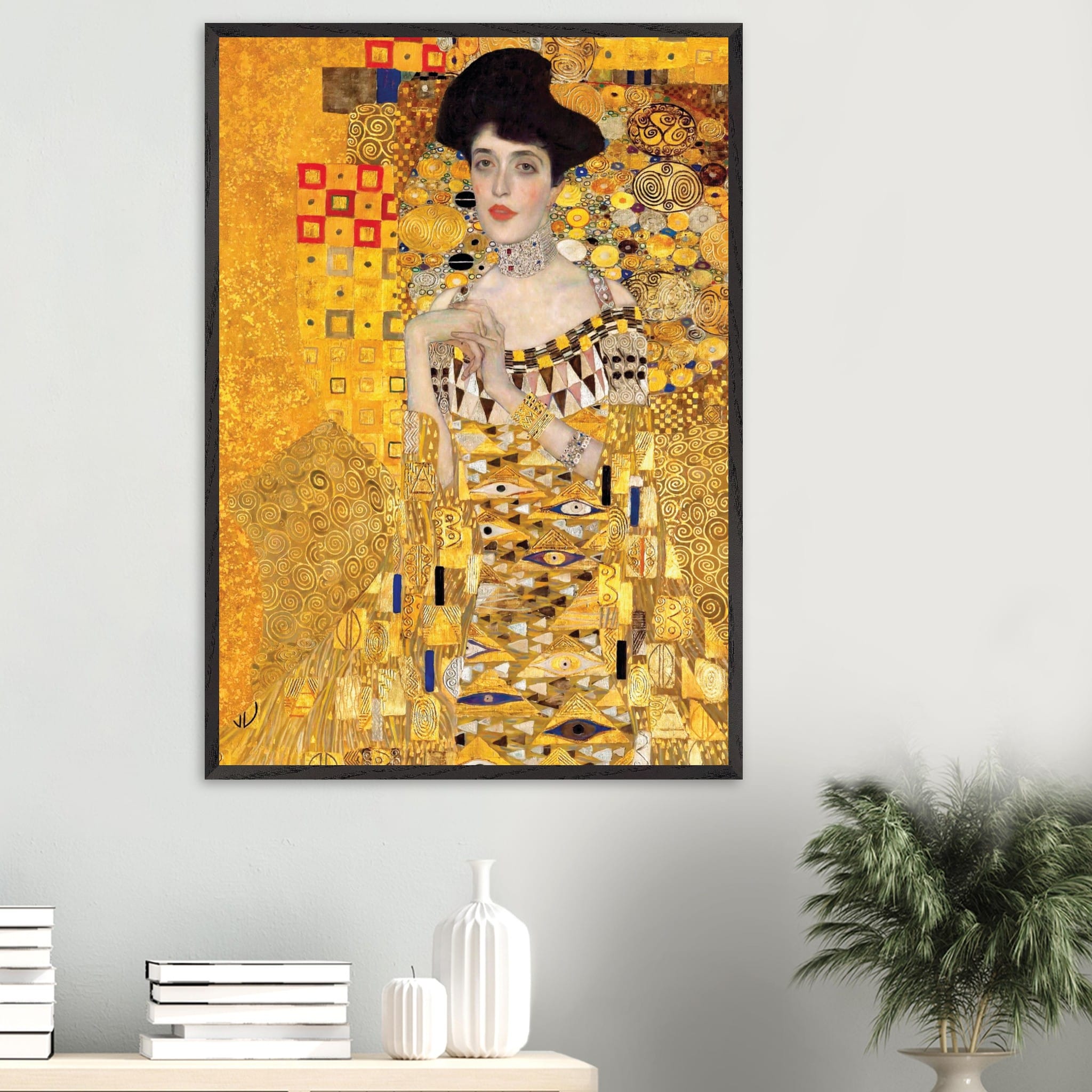Deze luxe kunstposter met het iconische portret van Gustav Klimt trekt direct de aandacht dankzij de bladgouden details, sierlijke patronen en tijdloze uitstraling voor stijlvolle interieurs.