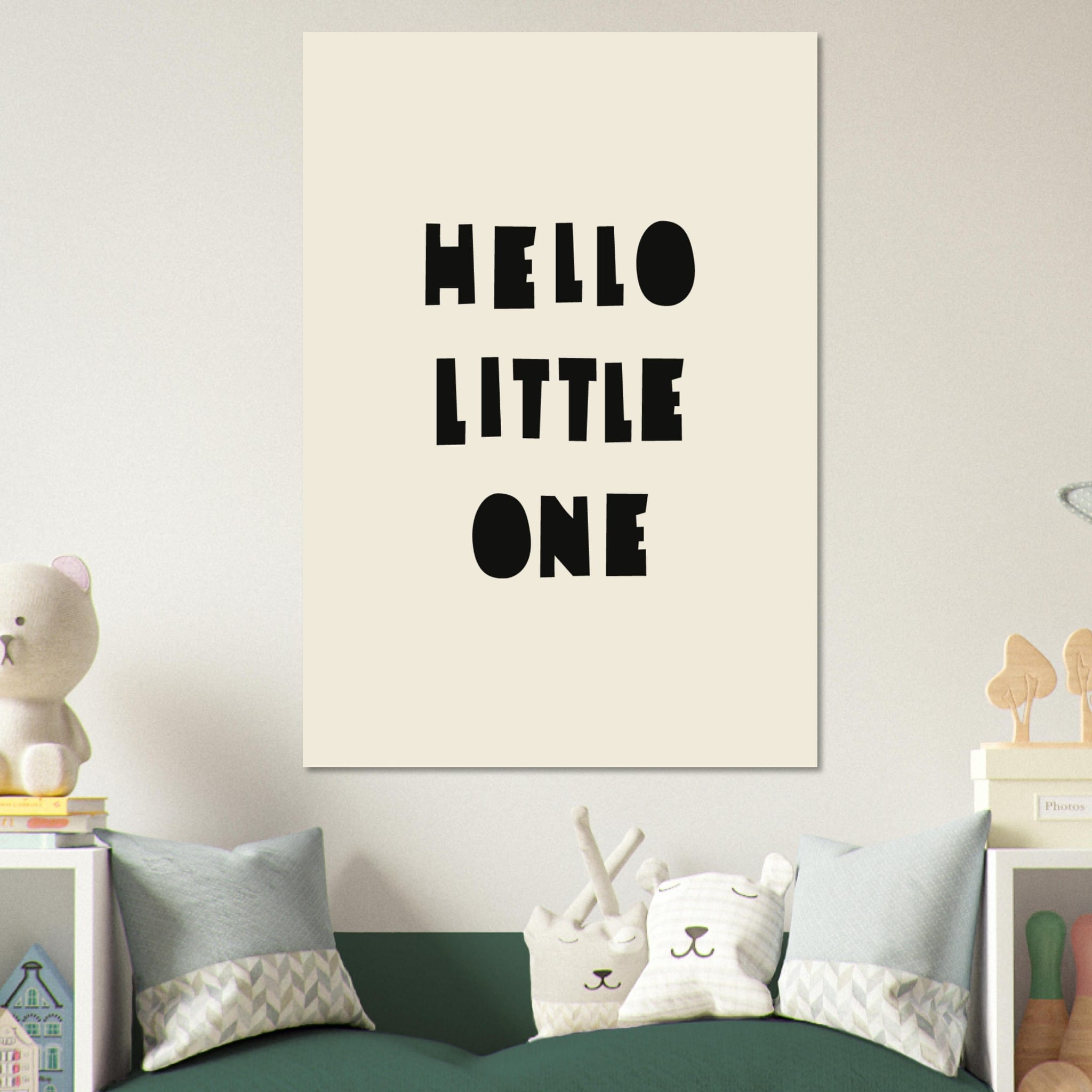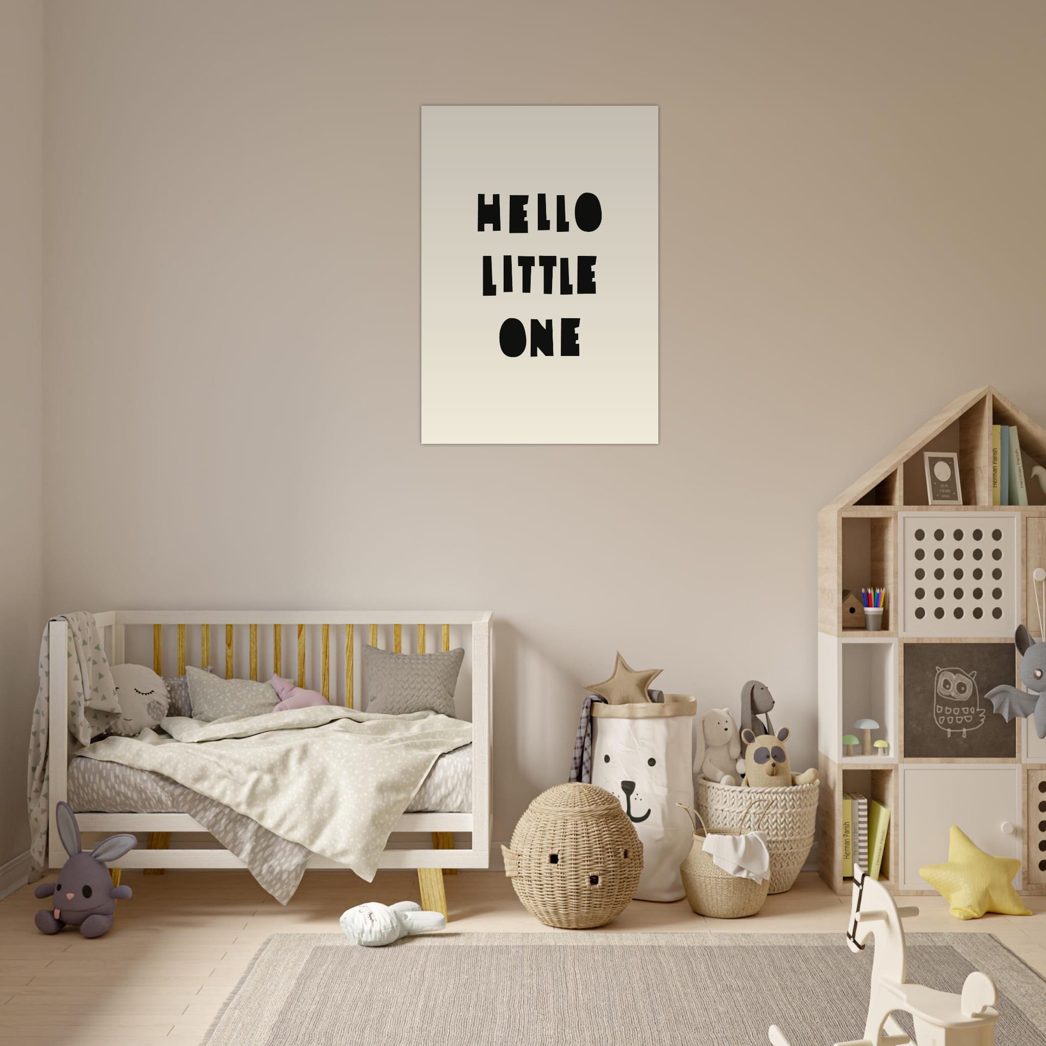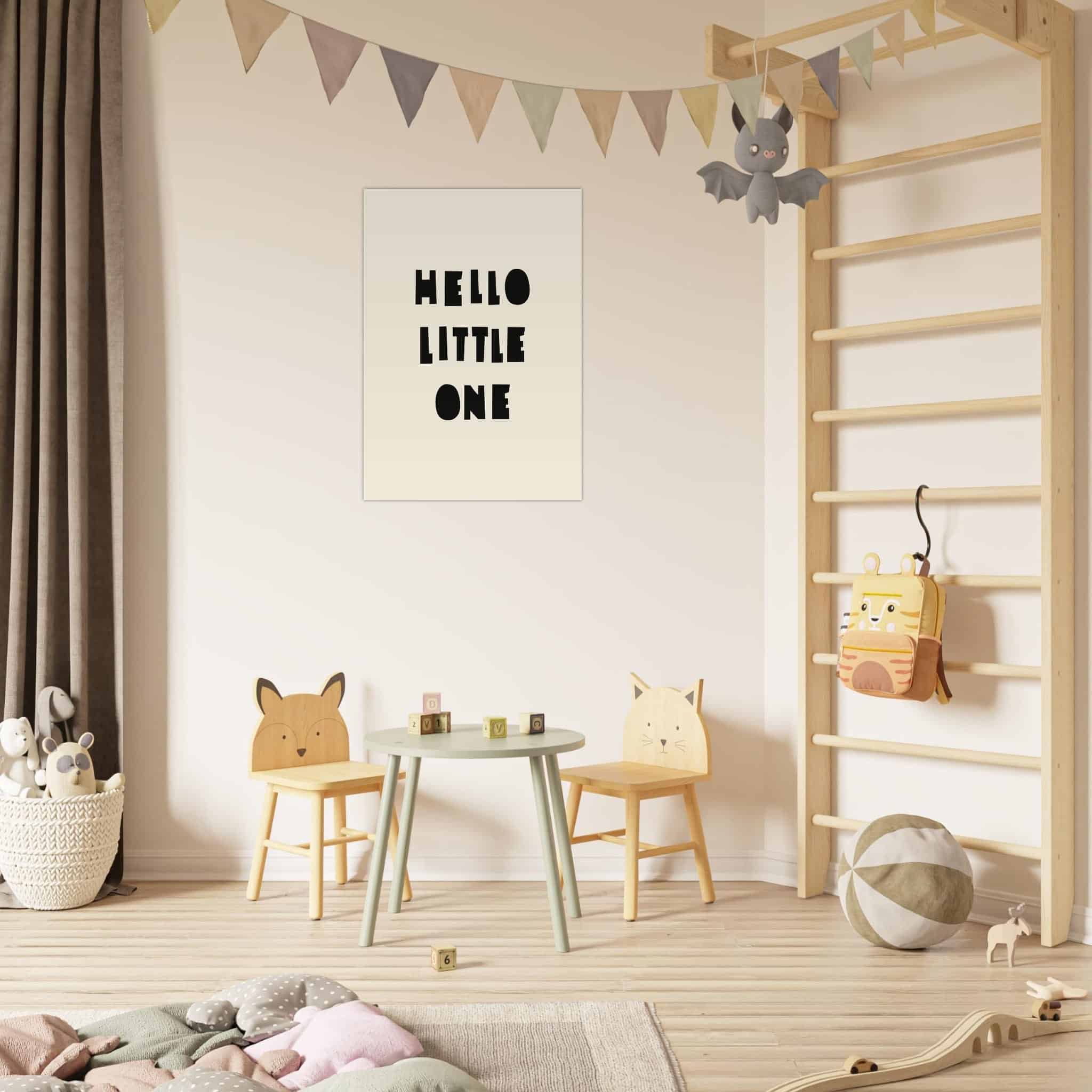 “Hello Little One” – breng een vrolijke sfeer in de kinderkamer met zachte kleuren en speels ontwerp. Een hartverwarmende decoratie voor je kleintje!