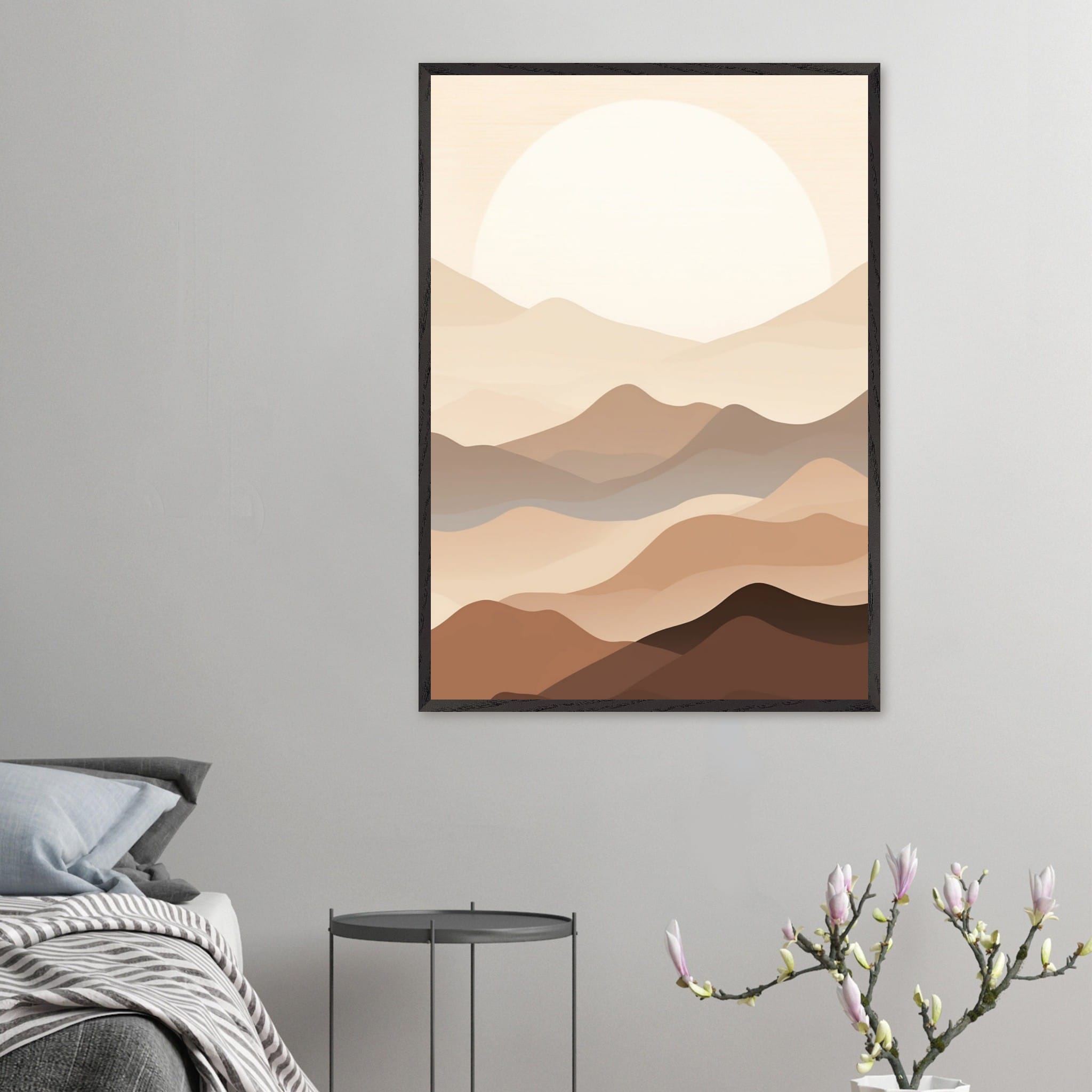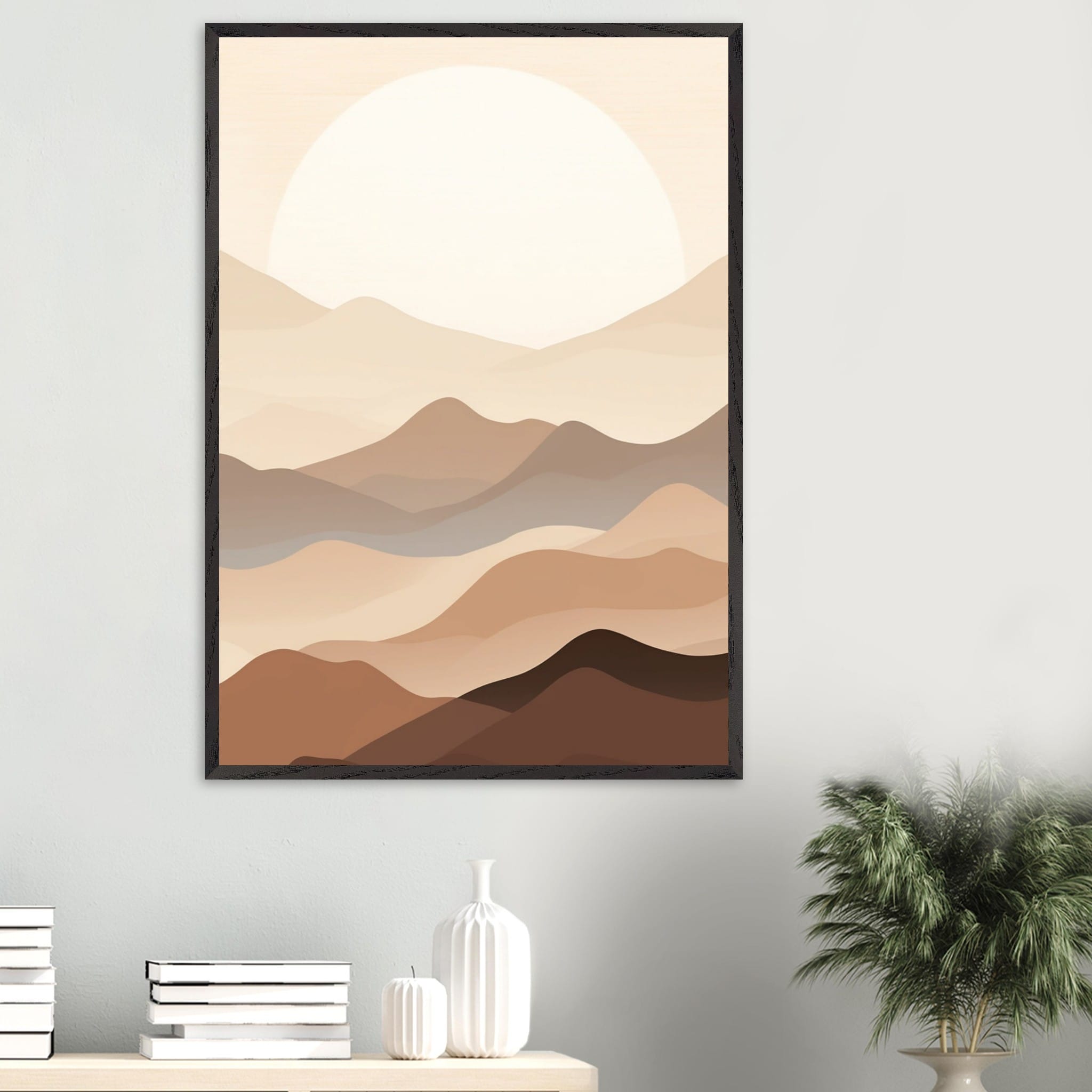 De Japandi Landscape poster straalt rust en eenvoud uit met zijn gestileerde weergave van een landschap, geïnspireerd op zowel Japanse als Scandinavische esthetiek. De combinatie van natuurlijke aardetinten en minimalistische vormen zorgt voor een tijdloos ontwerp dat perfect past in een rustig en gebalanceerd interieur. Deze poster ademt eenvoud, maar heeft tegelijkertijd een sterke visuele aantrekkingskracht. Ideaal voor in de woonkamer, slaapkamer of een werkruimte waar kalmte gewenst is. Laat je meevoeren door de zachte vormen en ingetogen kleuren die kenmerkend zijn voor de Japandi-stijl. Een stijlvolle toevoeging voor iedereen die houdt van minimalistische kunst met een natuurlijk karakter. Ontdek meer verfijnde Japandi Posters om een vleugje sereniteit in je interieur te brengen. Ook beschikbaar met een zwarte houten lijst!