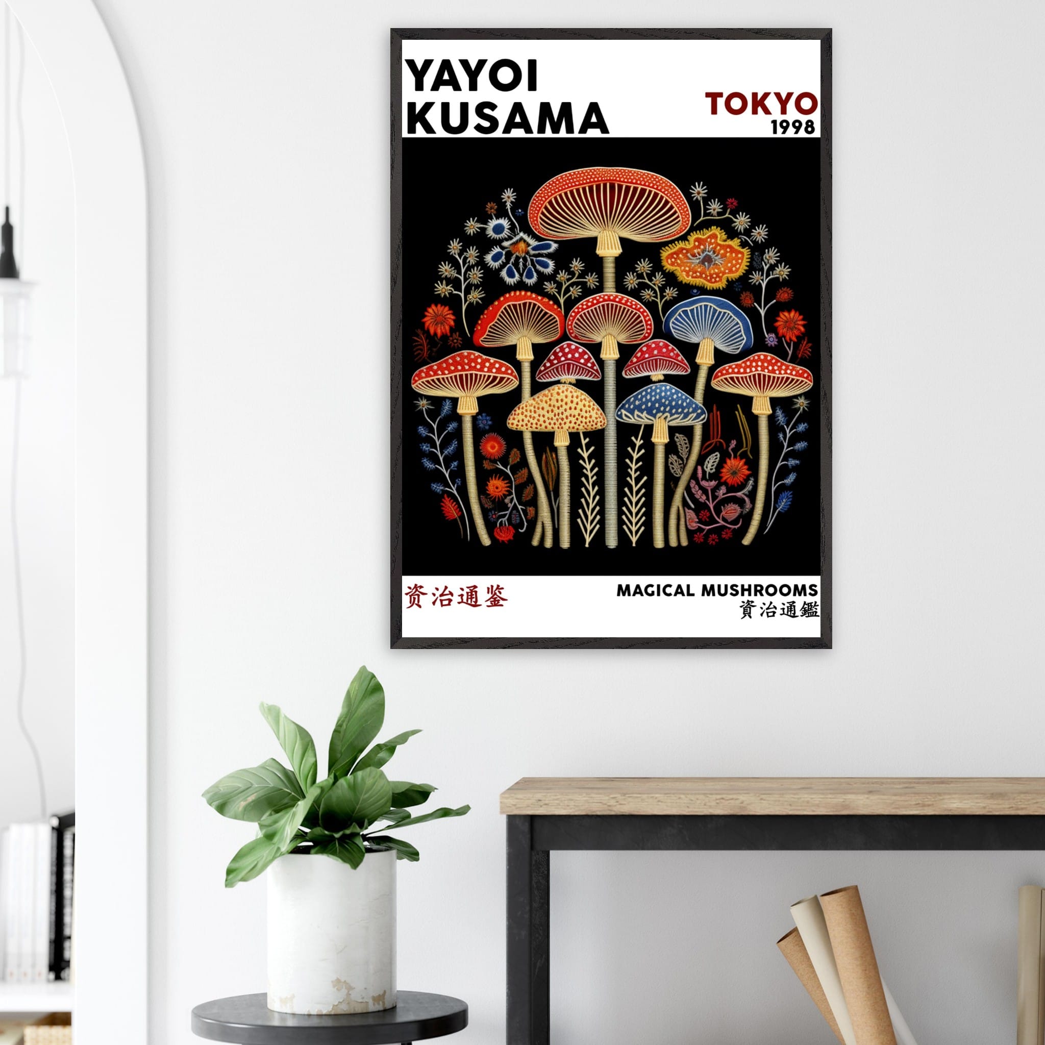 Betreed een wereld van fantasie en verwondering met ‘Magical Mushrooms’, een levendige en speelse creatie van Yayoi Kusama. Dit kunstwerk toont een verzameling van kleurrijke, abstracte paddenstoelen, die de kenmerkende stijl van Kusama uitstralen met hun polkadots en heldere kleuren. De speelse compositie en de levendige kleuren van ‘Magical Mushrooms’ brengen een vrolijke en magische sfeer in elke ruimte. Perfect voor liefhebbers van Kusama’s werk en voor iedereen die een vleugje fantasie en kleur aan hun interieur wil toevoegen. Ook beschikbaar met een zwarte houten lijst!